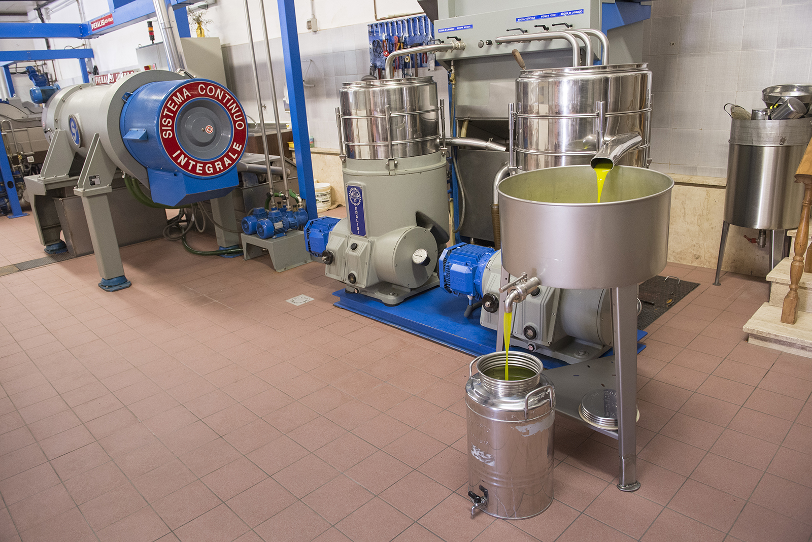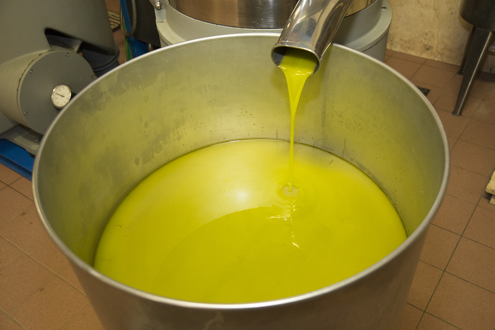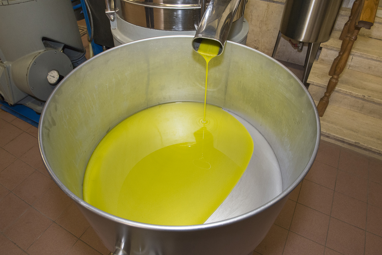 Quello che ne esce si chiama semplicemente pasta d’olive, la quale viene spinta, mediante una pompa mono, all’interno della gramola. La pompa mono non è altro che una pompa, la quale, spingendo a pressione costante, evita il riscaldamento e l’emulsione.