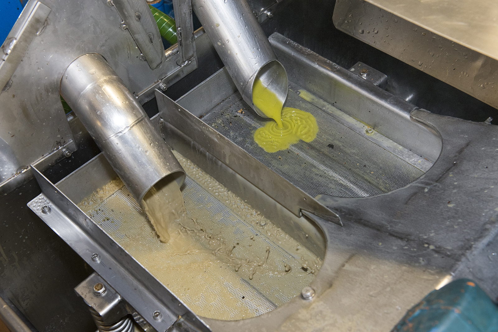 L’acqua di vegetazione e l’olio vengono ulteriormente e rispettivamente centrifugati da due distinti macchinari, i quali si chiamano separatori.