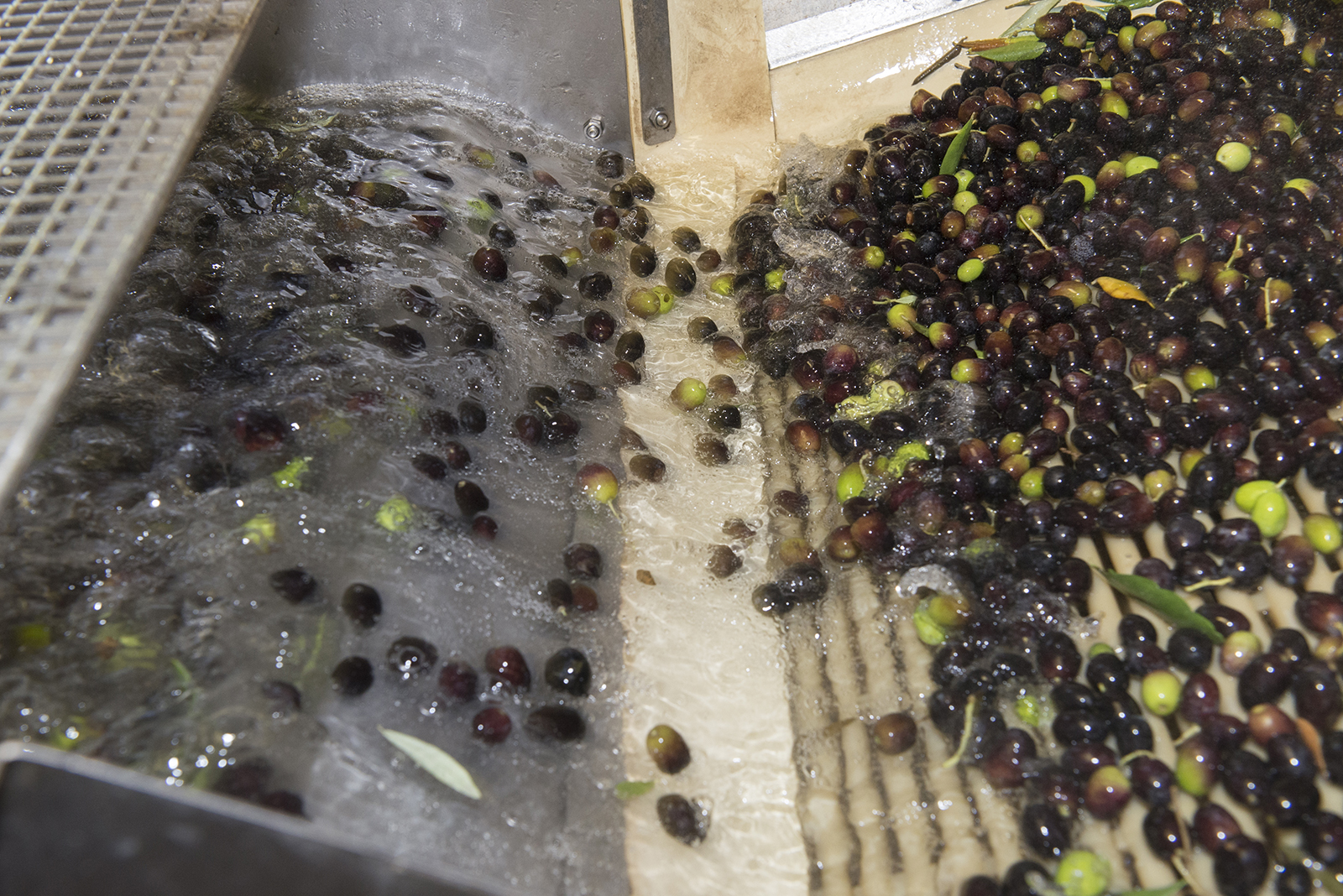 La lavatrice lava l’olive mediante idromassaggio, il quale le sposta in un altro piccolo nastro trasportatore dove subiscono un veloce risciacquo, per così cadere in un’altra piccola tramoggia. La lavatrice, oltre che a lavare l’olive dall’impurità, trattiene anche ciò che è più peso di loro.