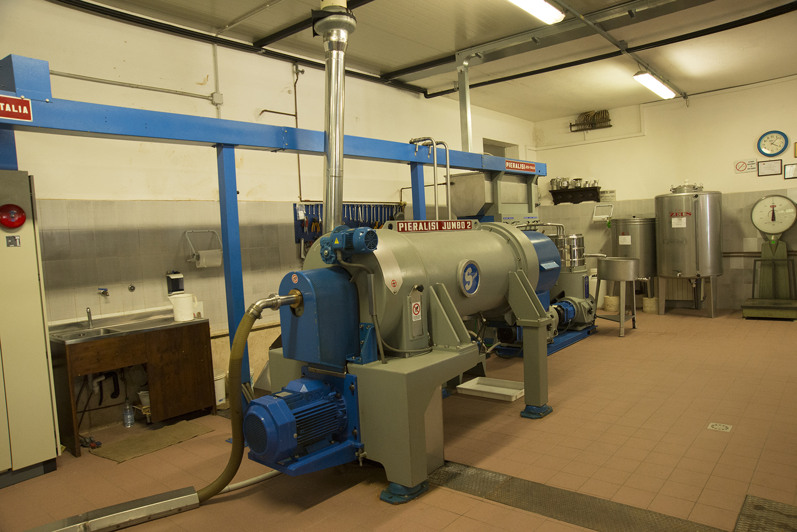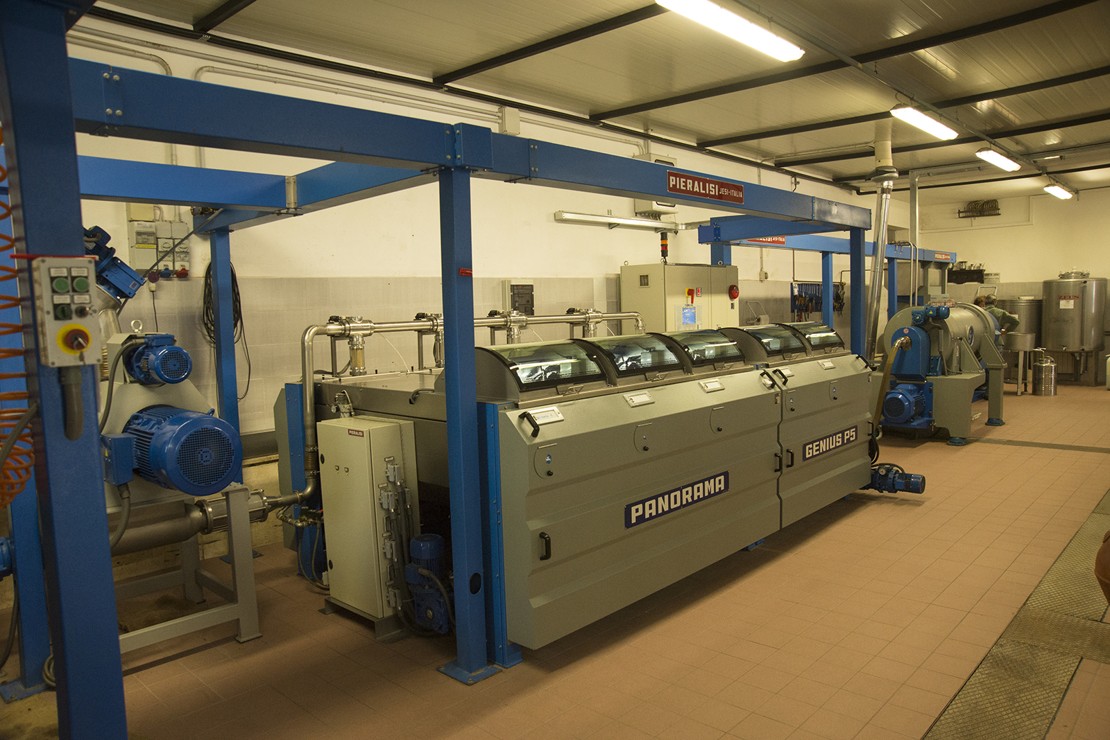 Ad oggi il Frantoio della Famiglia Mazzarrini è un impianto dell’Azienda Pieralisi, di tipo continuo ed integrato, trifase, da circa 25q.li/ora, con cinque aree di sosta. “q.li” è la sigla di quintale, un quintale è 100Kg..